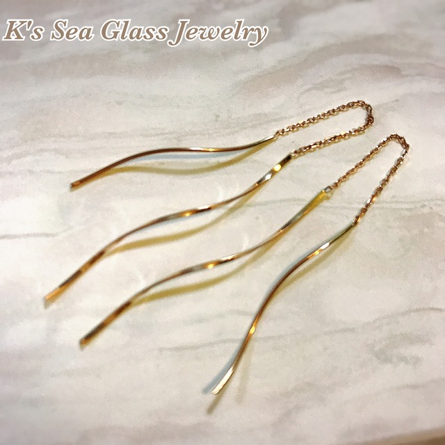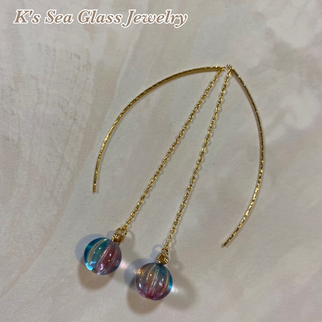 イギリスから取り寄せたシーグラスです。 長年波に揉まれ、自然に角が取れたシーグラス。 アンティークシーグラス、 ヴィンテージシーグラスとも呼ばれており、綺麗なグラデーションになっています。 14kgfでピアスに仕上げました。