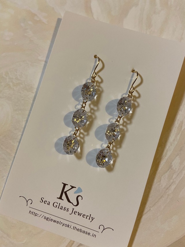 ジルコニア サークル 3連ピアス all 14kgf キラキラ可愛い14kgfのピアスです。