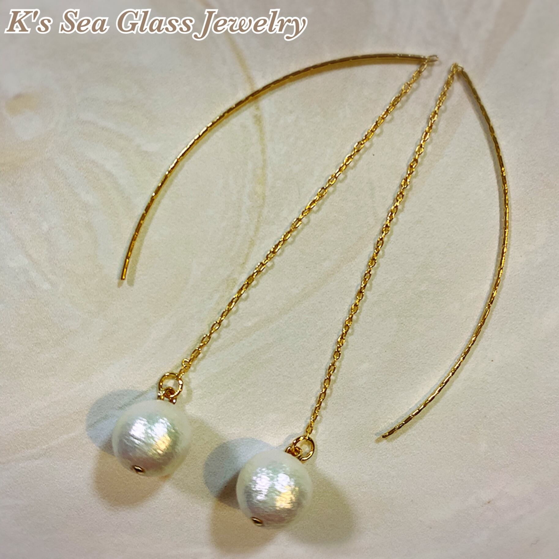 軽くて華やかなコットンパール(8mm)のシンプルなデザインチェーンピアスです(*^_^*)