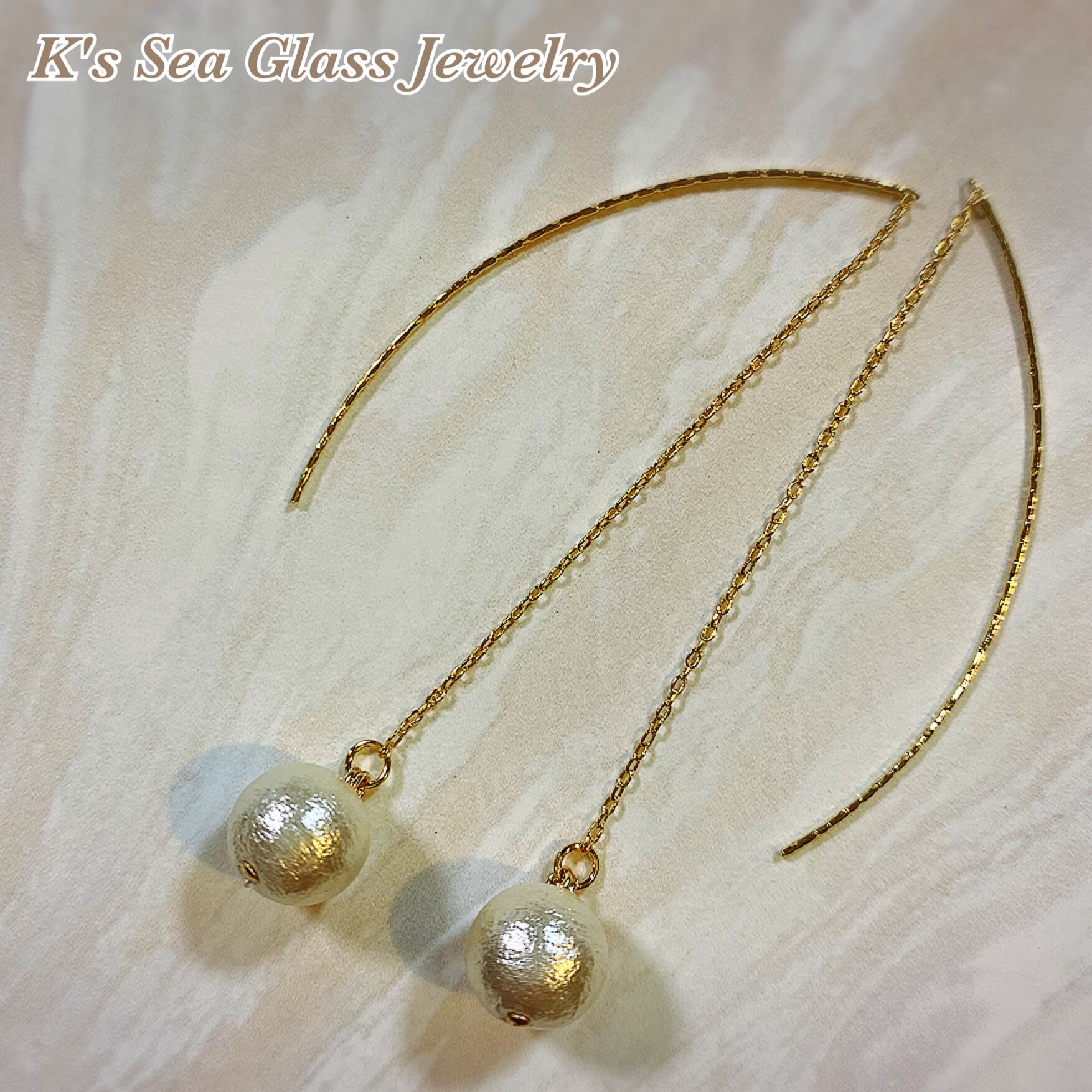 軽くて華やかなコットンパール(8mm)のシンプルなデザインチェーンピアスです(*^_^*)