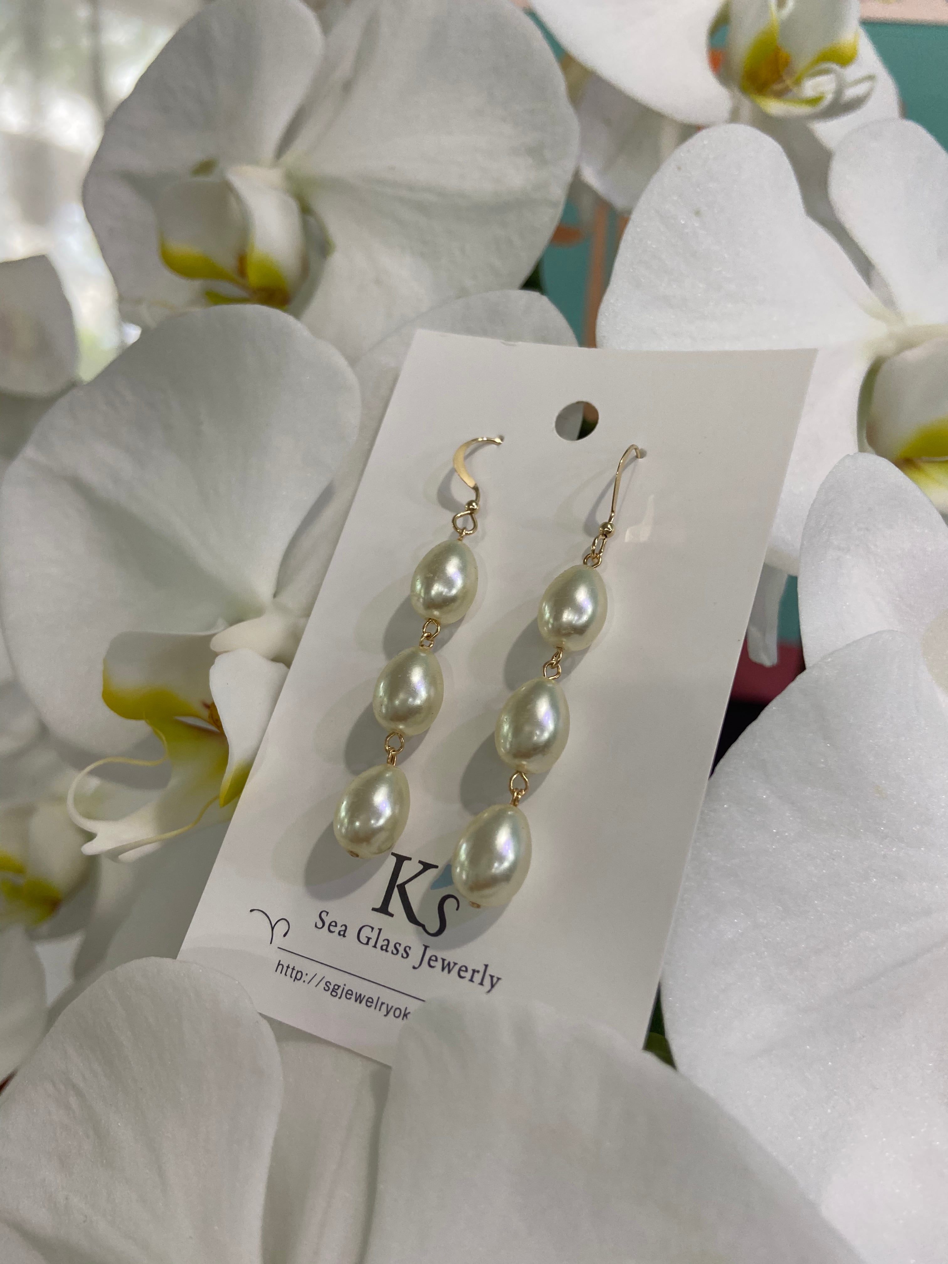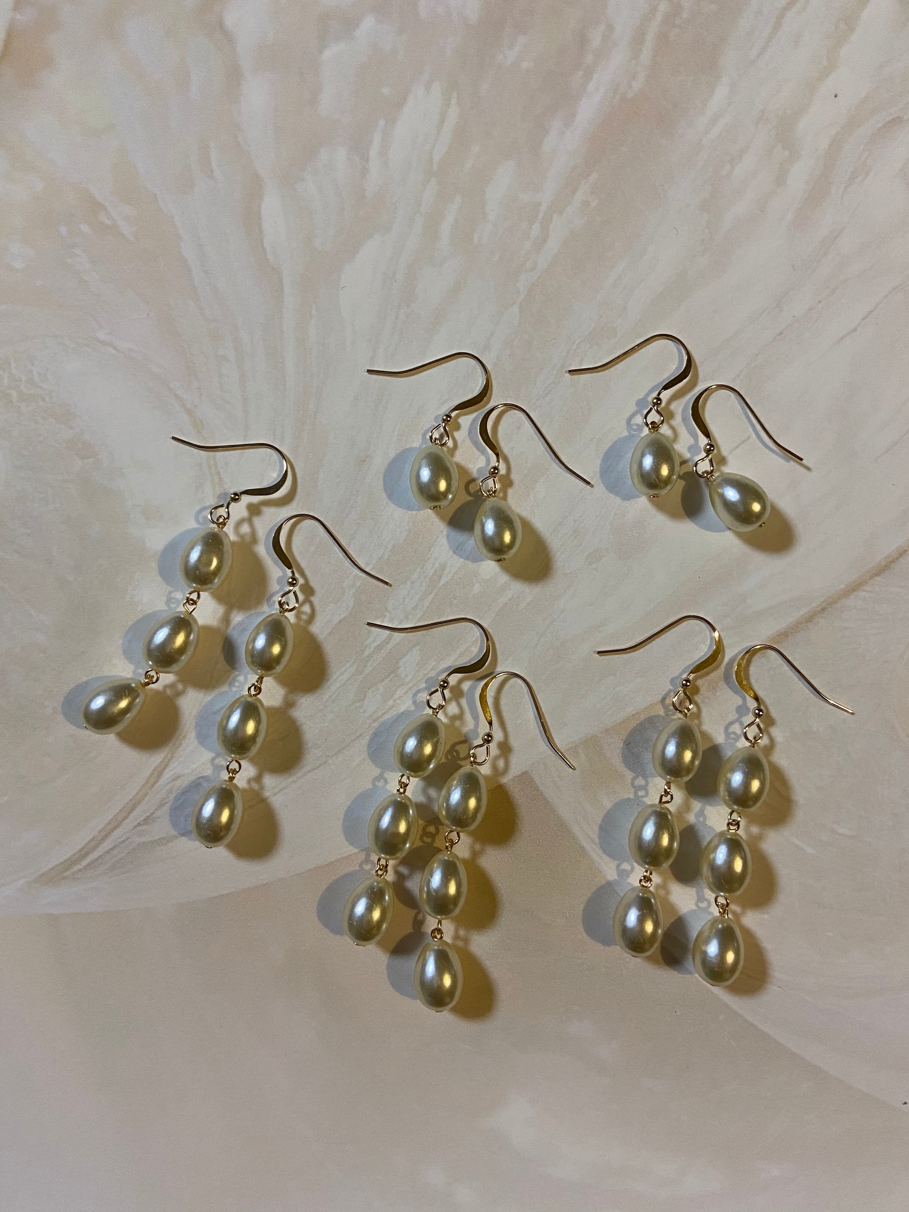 綺麗な雫型パールの3連ピアス